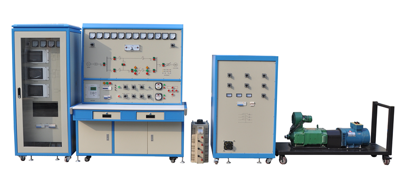 該平臺由五部分組成:同步發電機組、機組控制柜、輸電線路及監視保護屏、無窮大電力系統和阻抗負載。對風力發電并網過程中常用的自動裝置、監控、電力系統運行、繼電保護等教學內容進行操作、測試和試驗。裝置采用固定式結構。