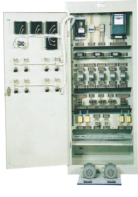 該裝置按標準電氣控制柜設計制造規格,充分利用雙面位置,柜內裝有完成各種照明電路所需的單相電度表、日光燈、單聯開關、插座、感應開關、漏電開關等,以及電氣控制所需要的多種低壓電器,如漏電斷路器、熔斷器、電流互感器、交流接觸器、時間繼電器、熱繼電器、中間繼電器、行程開關、按鈕、信號燈、轉換開關、電壓表、電流表、功率表及電度表等,為了延長電器使用壽命,各電器的接點都與接線端子相連,再由接線端子與被控制電氣連接。