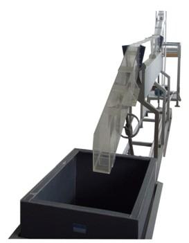 2、實驗槽道:全長11m有機玻璃雙變坡水槽,前后段有兩個可根據需要調節不同坡度的活動軸裝置。