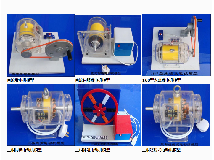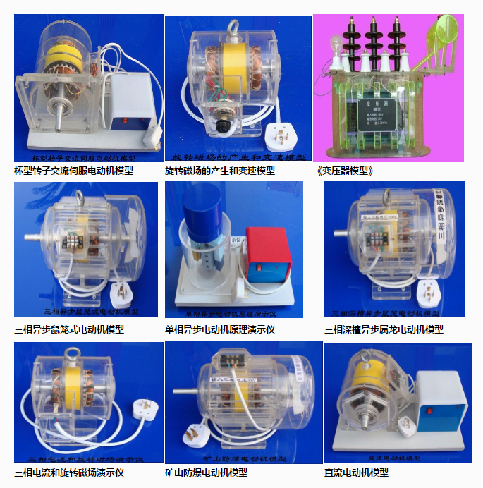 透明電機教學演示模型,是傳統教具產品,在多年生產基礎上不斷改進探索,并參考國外先進工藝技術,采用高精度加工工藝克服了透明有機玻璃具有熱塑性、容易變形及機械強度差的特點,全部實現了模具加工、一次成型。使整臺模型透明直觀、玲瓏精致、形象逼真,并且能夠通電轉動演示。重點突出了“透明、演示”這一特殊的教學要求。在設計產品的同時,上海戴育注重以理論為依據,以演示為目的。系列電機與變壓器模型外形,采用實物同等形狀,多種有機彩色配套,內部結構均按有關電機原理制作,極力追求模型的層次性、透視性,正確反映教學原理,力求達到更好的教學目的和效果。