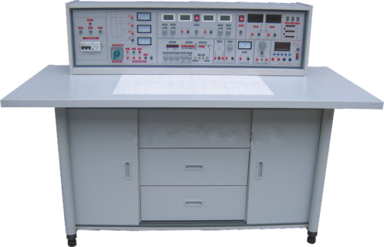 (一)實驗桌:學生實驗桌12張,一桌二座,實驗桌外形尺寸為160×70×80cm。桌子中央配置九孔電路插板,電路板注塑而成,表面布有九孔成一組相互聯通的插孔,元件盒在其上任意拼插成實驗電路。元件盒盒體透明直觀,內裝電阻、電容、電感、二極管、三極管、場效應管、可控硅等元件來完成原理實驗。內裝元件一目了然,盒蓋印有永不褪色元件符號,線條清晰美觀。盒體與盒蓋采用較科學的壓卡式結構,維修、拆裝方便。繼電部分訓練元器件已裝在特制的元件盒上,實訓時插在九孔電路板上即可連線實驗,方便,靈活。模電、數電實訓項目由二十幾套實訓電路板和相應元器件來完成。每張操作桌配有一粒膠皮板,保護通用電路板和桌面(如出需要在桌上放置電動機、焊接等) 桌子下部是元器件儲存柜,放置實驗元件、器材、工具等。